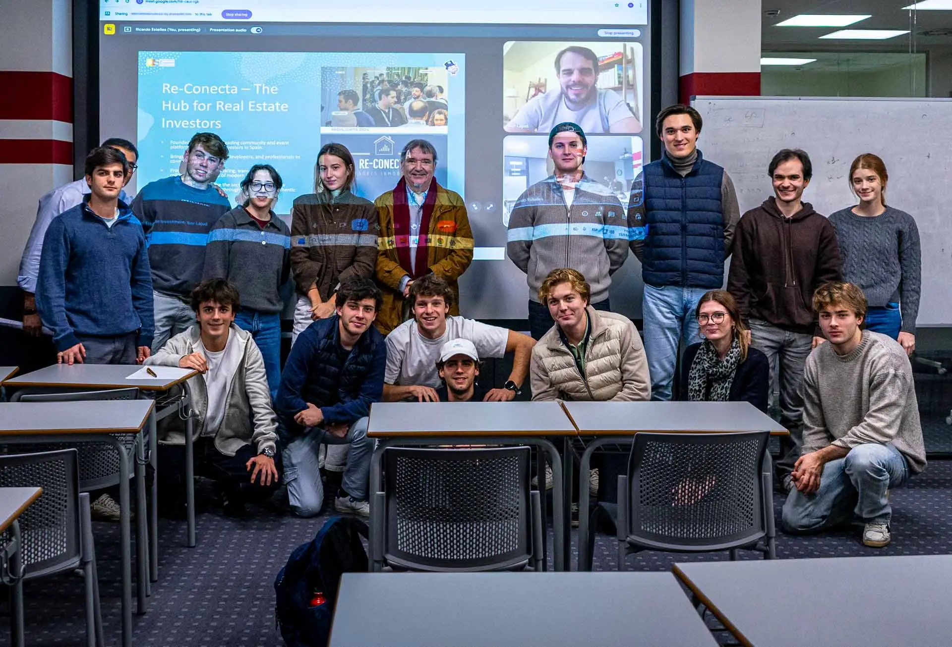 Los estudiantes también tuvieron la oportunidad de conocer Re-Conecta, la plataforma para inversores inmobiliarios fundada por Lajud, consolidada como un punto de encuentro para profesionales del sector en España. Esta comunidad fomenta la transparencia, el intercambio de conocimientos y la profesionalización del ámbito inmobiliario, tal y como aparece en las diapositivas del evento.