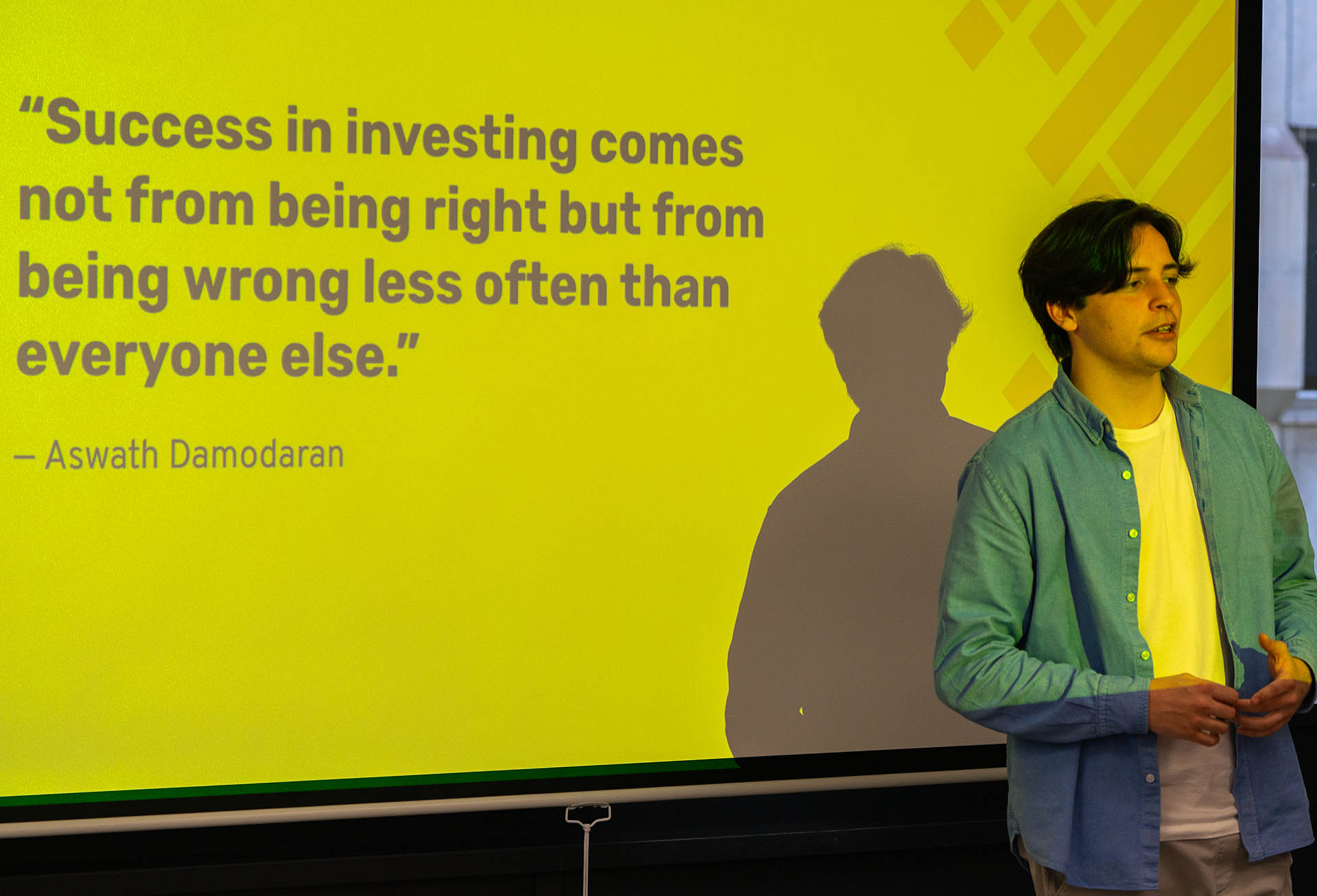 At a recent session of the Investment and Finance Club (IFC), student Sebastian Mander gave his classmates a detailed analysis and review of the book “The Little Book of Valuation,” written by NYU Stern Business School finance professor Aswath Damodaran.